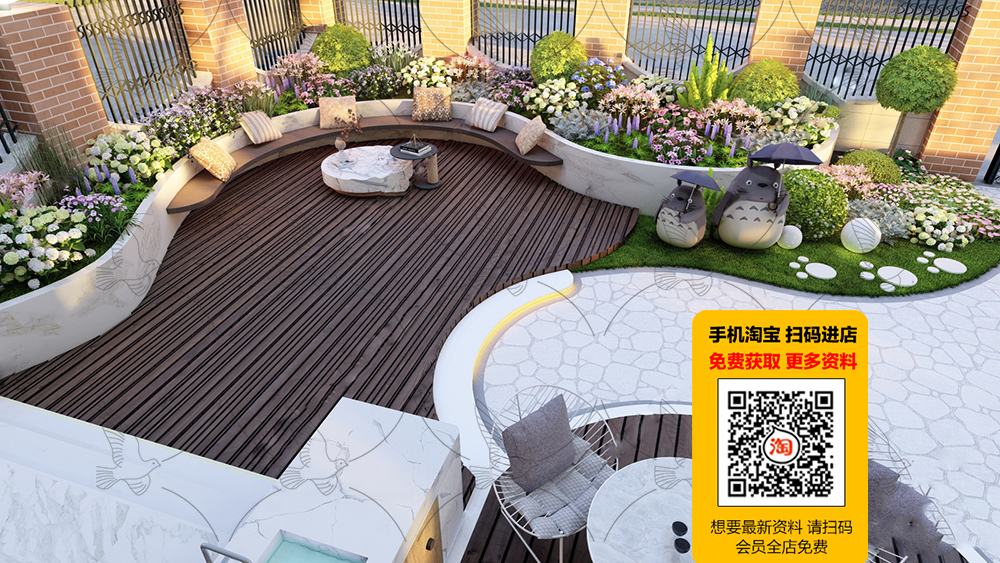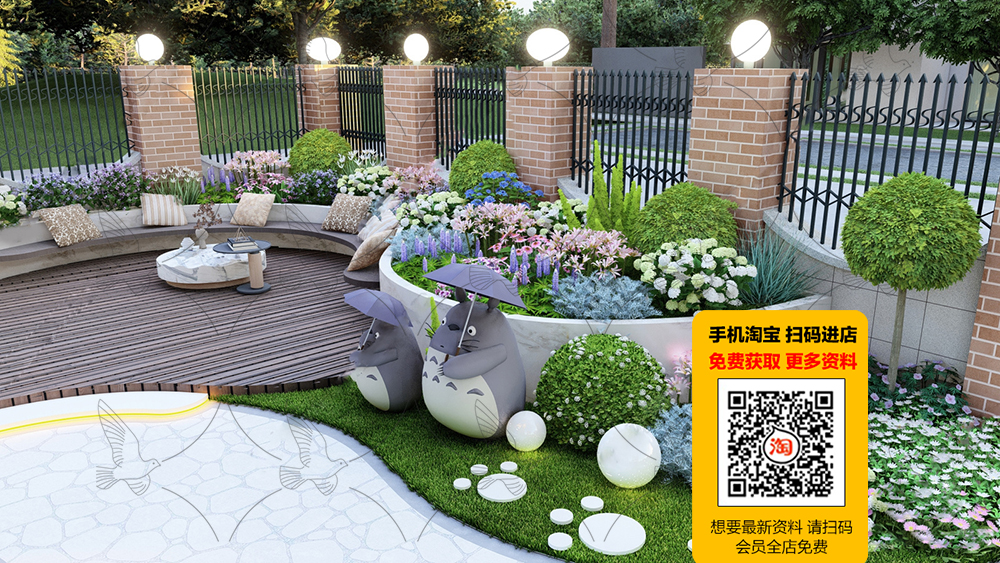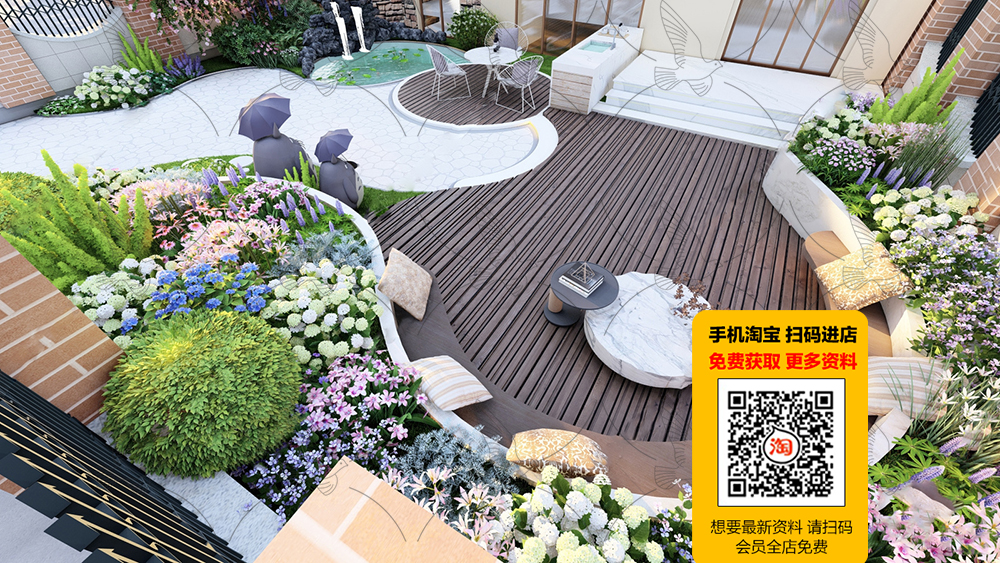 This 3D scene features a beautifully designed garden with intricate landscaping and natural elements. The scene captures the essence of a serene outdoor space, perfect for inspiration in landscape design and architecture projects.