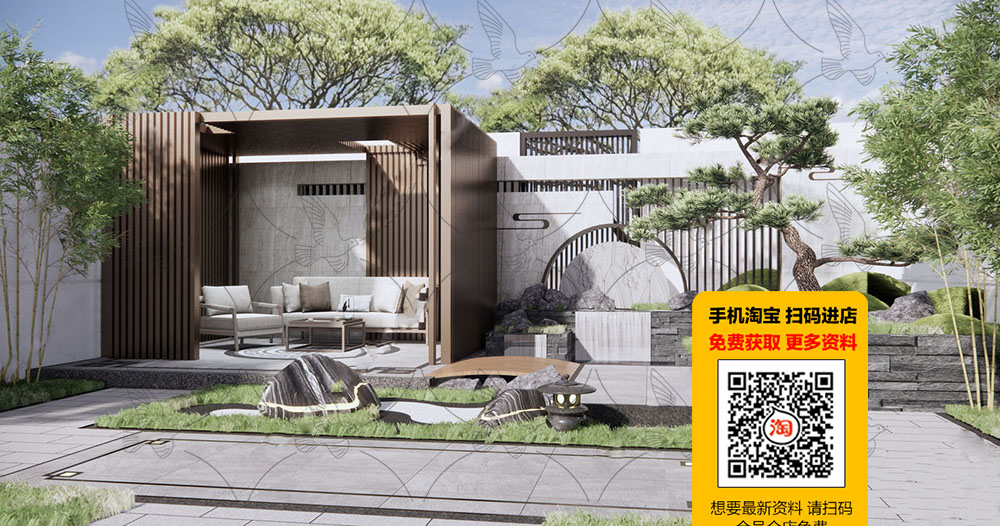 This 3D scene features a beautifully designed garden with lush greenery, trees, and architectural elements. The intricate details and natural elements create a serene and inviting outdoor space. Perfect for showcasing landscape design ideas and architectural visualization projects.