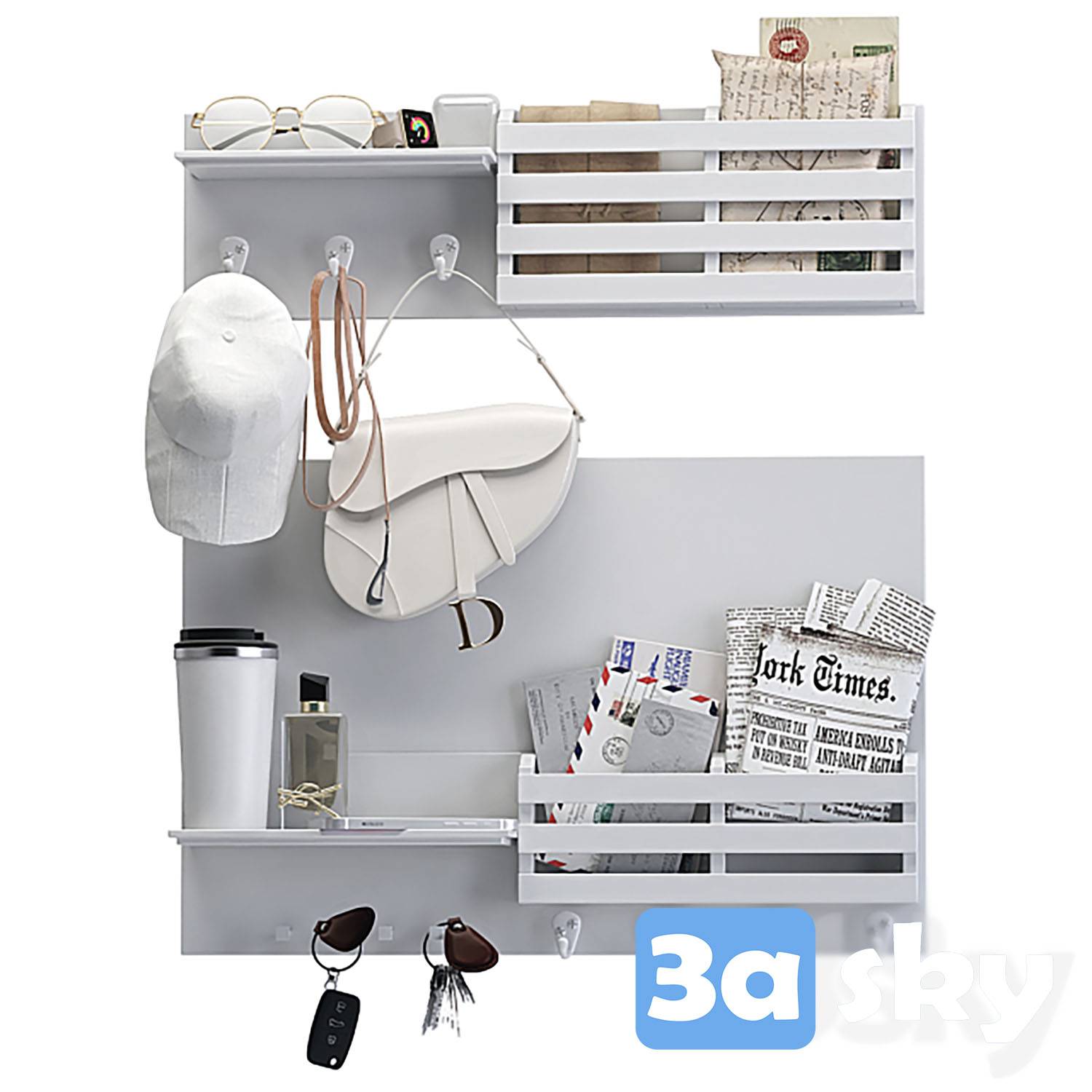 This 3D model showcases a set of decorative items designed for hallway spaces. The collection includes various accessories that can be used to enhance the visual appeal of interior designs. Incorporate these items into your 3D projects to create realistic and stylish environments.