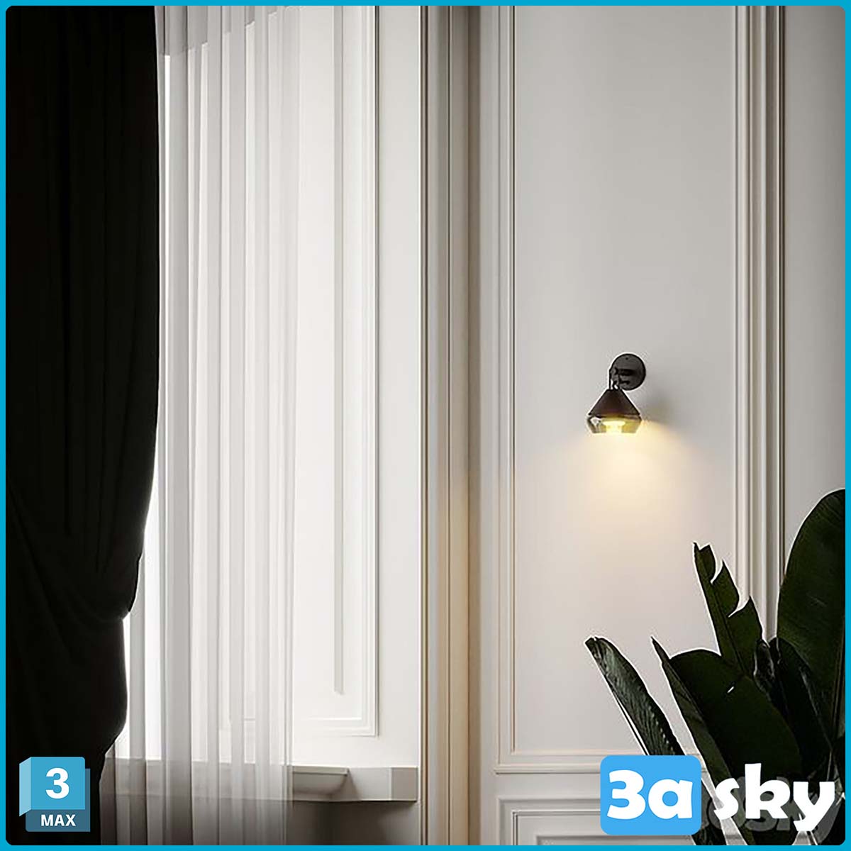This 3D model features the Hatti Wall Sconce designed by Articolo. It is a stylish lighting fixture suitable for interior design projects. The intricate design and attention to detail make it a standout piece for architectural visualization purposes.