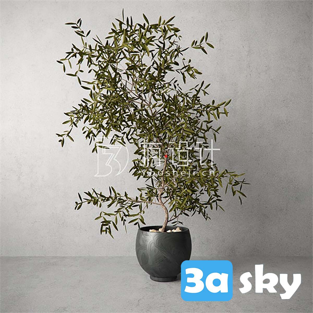 This 3D model features a detailed houseplant designed in 3DS MAX. It is suitable for use in interior design projects, architectural visualization, and more. Download this high-quality tree plant model to enhance your creative projects.
