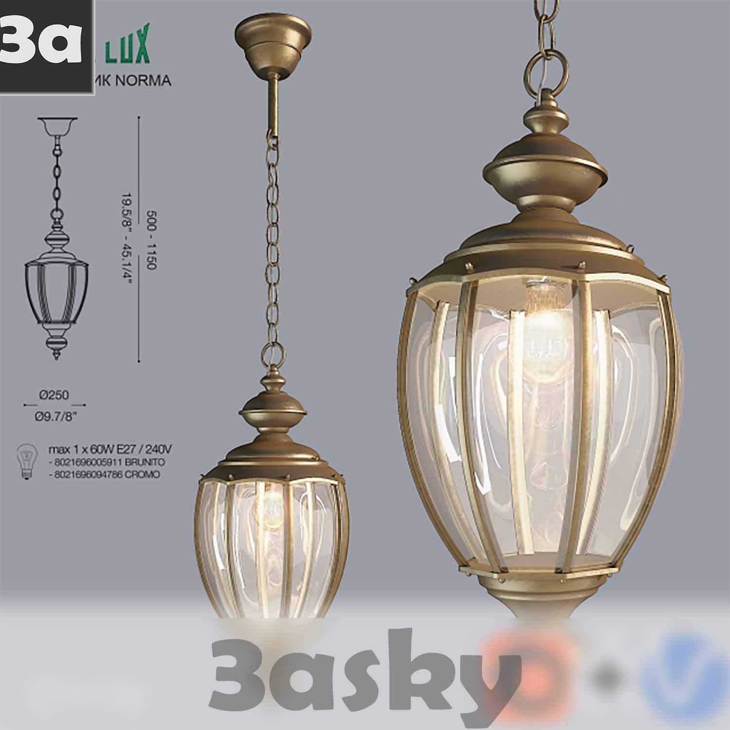 This 3DS MAX file features a preview of the Ideal Lux Norma SP1 Big Brunito lighting fixture. It is a modern and stylish design suitable for interior design projects. The file includes detailed lighting elements and textures for realistic visualization.