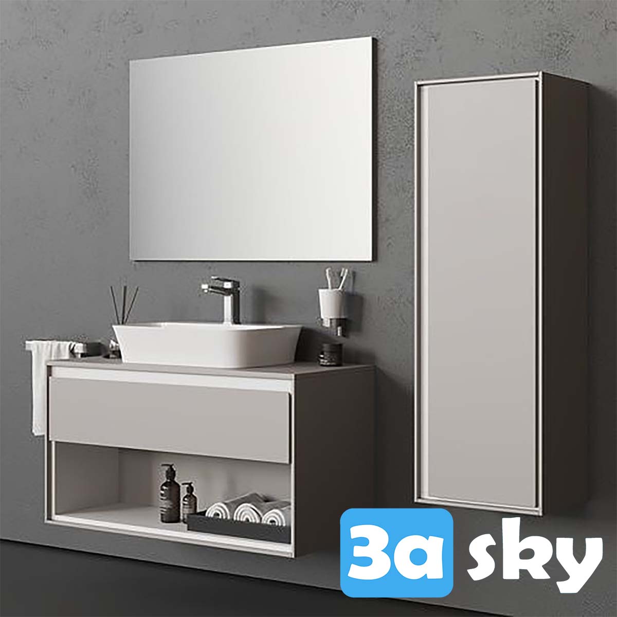 This 3D model features the Ideal Standard Connect Air Bathroom Set, showcasing a modern and stylish design for bathrooms and WC. The set includes various elements for a contemporary bathroom setup, providing a sleek and functional space. Explore this high-quality 3D representation to visualize the design and layout of the Ideal Standard Connect Air Bathroom Set.
