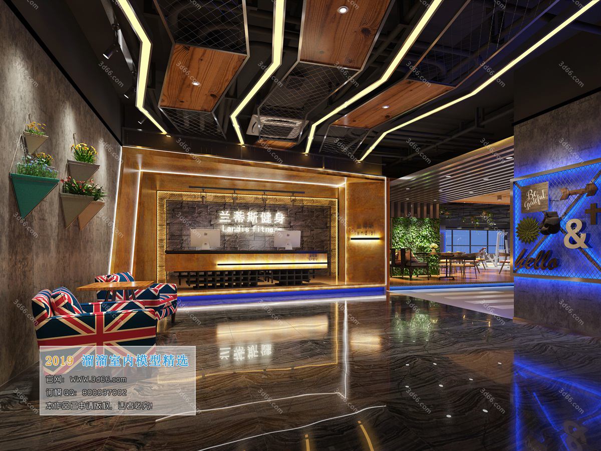 This 3D scene showcases an industrial style front desk lobby, featuring a unique and modern design. The intricate details and layout of the space are captured in this 3DS MAX file, providing a glimpse into the world of interior architecture and design.
