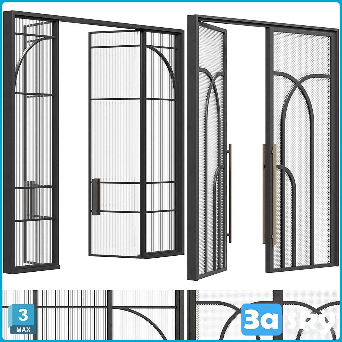 This 3D model showcases a collection of interior doors, designed for architectural visualization projects. The file is in 3DS MAX/ARCHITECTURE format, providing a high level of detail and realism. Perfect for interior designers, architects, and 3D artists looking to enhance their projects with realistic door designs.