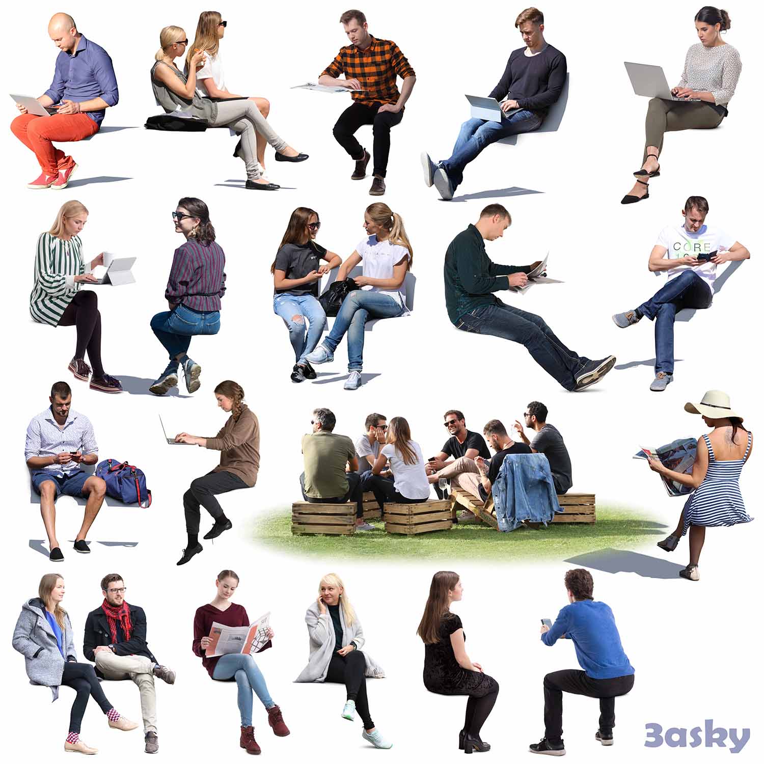 This Photoshop file showcases a preview of people sitting in a realistic setting. It is a high-quality image suitable for various design projects.