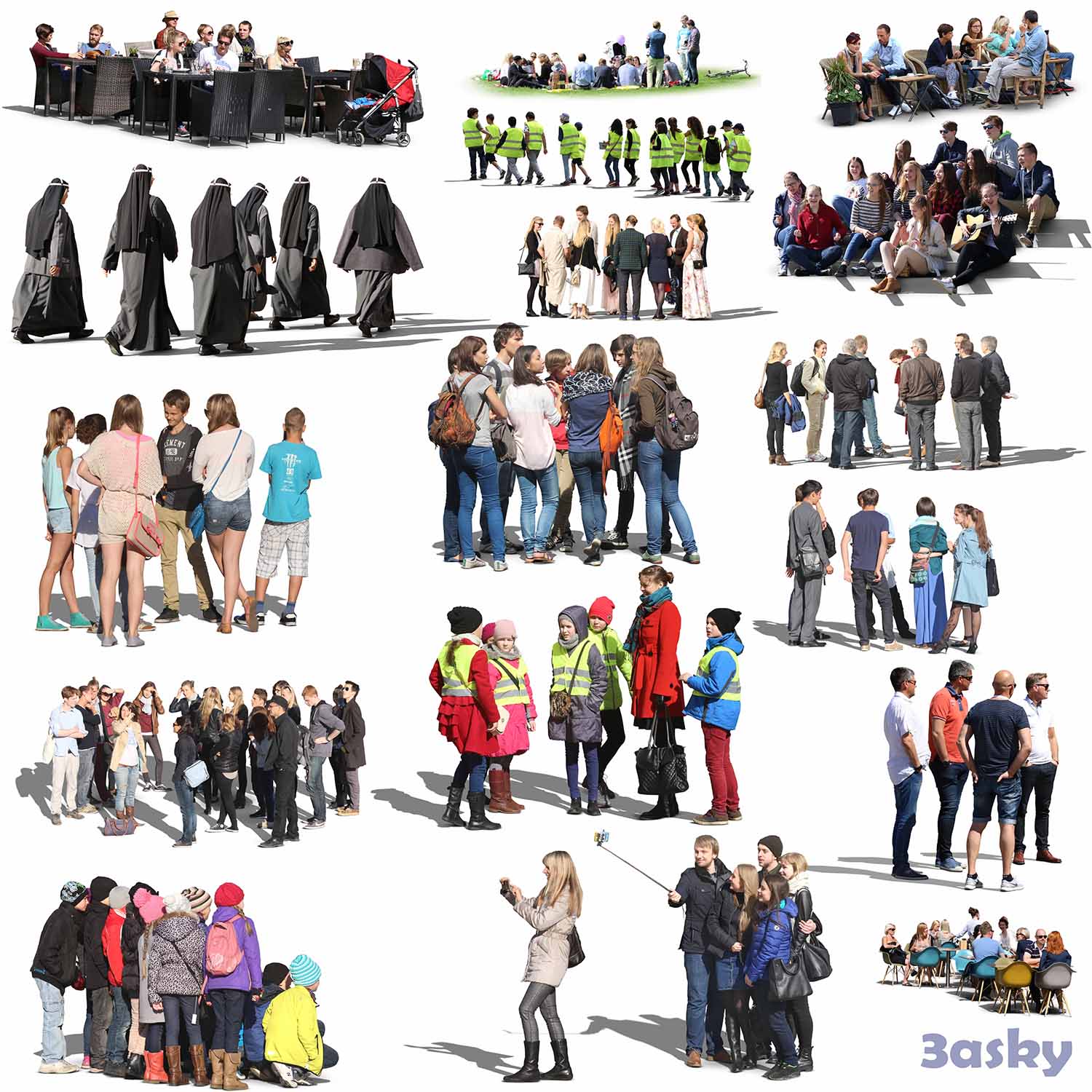 This Photoshop file features a crowd of people in different poses and activities. It is a high-quality image suitable for various design projects. Download the PSD file to access and customize the content.