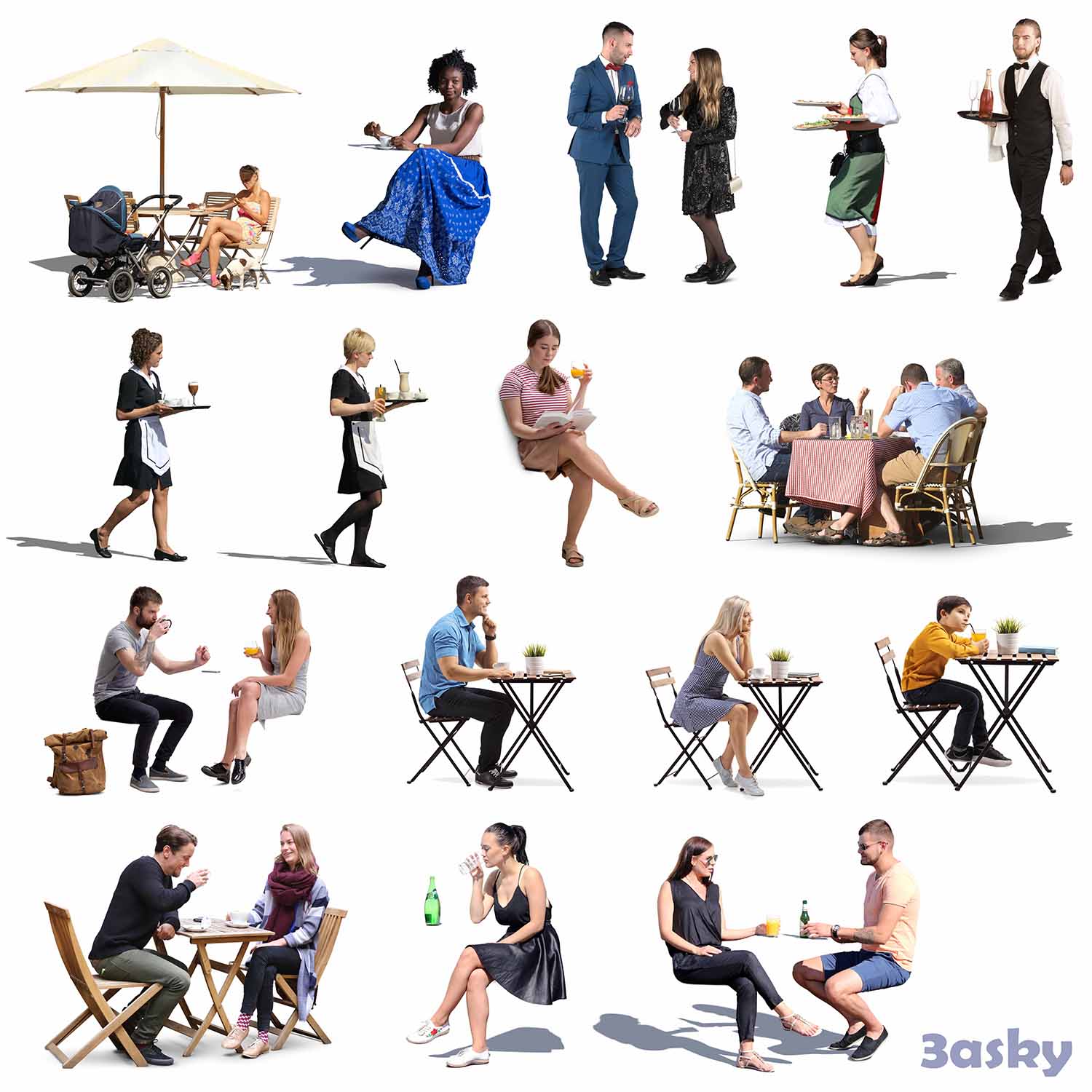 This Photoshop file showcases a collection of people in different poses and settings. It offers a glimpse into the design elements and compositions used in the file, providing inspiration for various projects and creative endeavors.