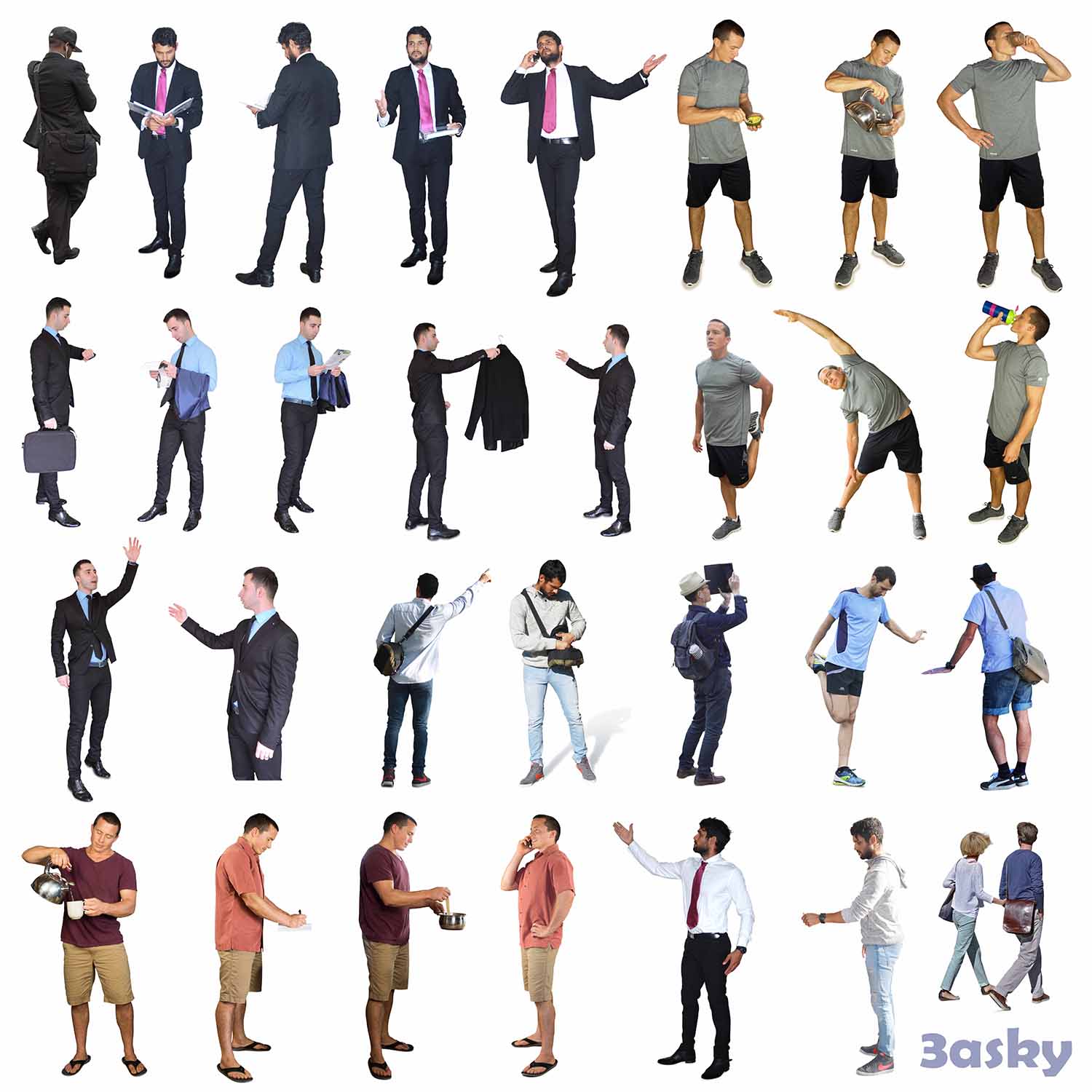 This Photoshop file showcases a collection of people in different poses and settings. It provides a preview of the design elements and compositions used in the file, offering insights into creative possibilities for projects.