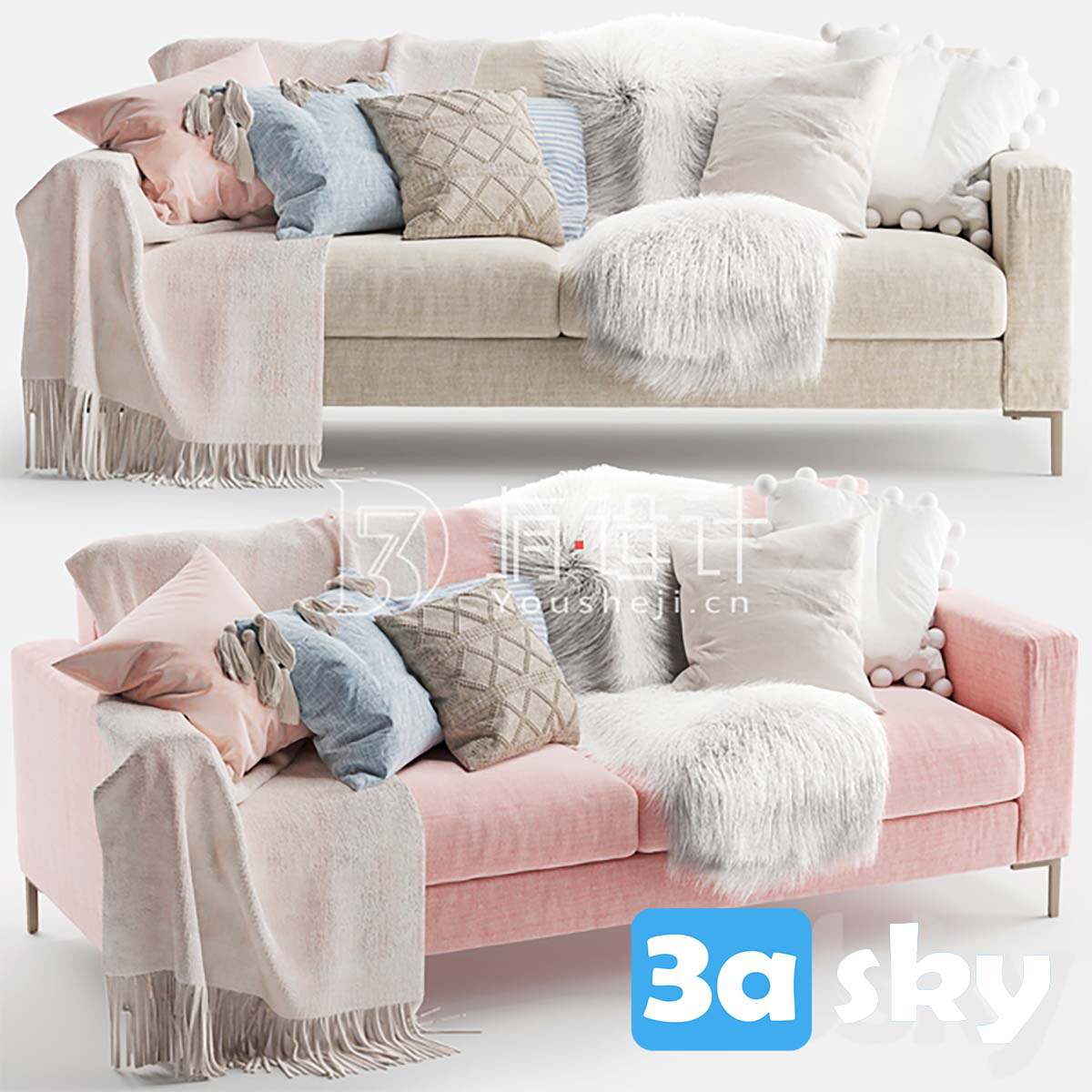 This 3D model features the Juno 3 Seater Sofa, a modern and comfortable furniture piece suitable for various interior design projects. The high-quality design and attention to detail make it a perfect addition to any living room visualization. Download this 3D model now to enhance your interior design projects.
