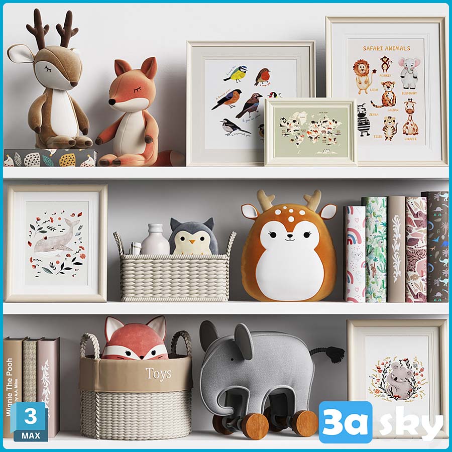 This 3D model showcases a beautifully designed kids room decor, featuring furniture, toys, and a cozy ambiance. Created using 3DS MAX software, this model is perfect for interior designers, architects, and anyone interested in home decor. The preview image gives a glimpse of the detailed elements included in this 3D model.