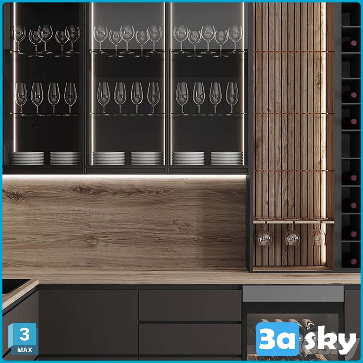 This 3D model showcases a kitchen design with a luxurious chocolate theme. The intricate details and realistic textures make it ideal for interior designers and architects looking to visualize their projects. Created using 3DS Max software, this kitchen model is perfect for adding a touch of elegance to any virtual space.