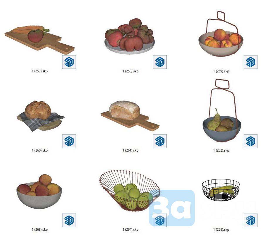 This 3D model showcases a kitchen design with a charming fruits theme. The vibrant colors and creative layout make it a unique and inspiring space. Explore the details and elements of this kitchen for your design inspiration.
