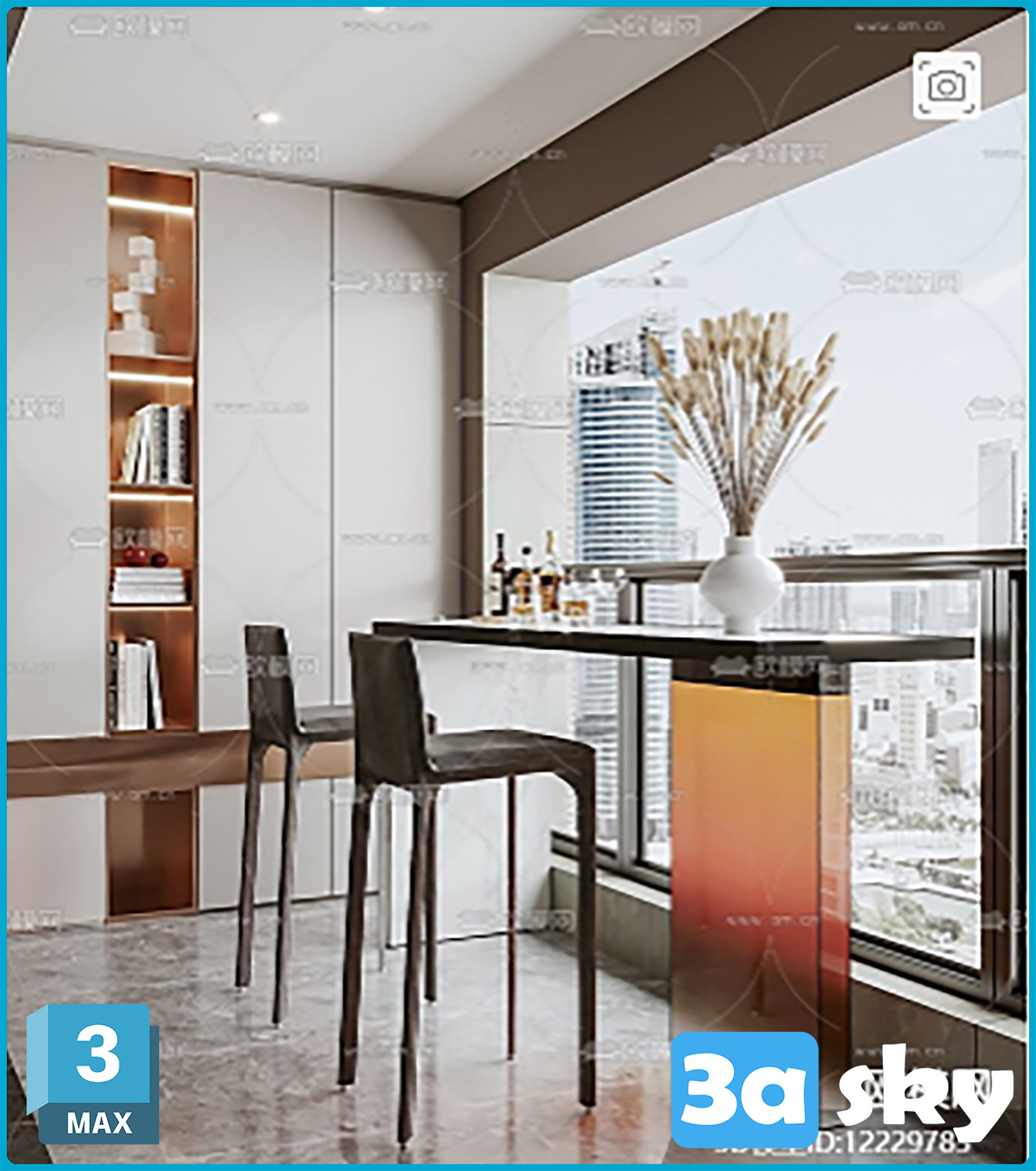 This 3D model showcases a beautifully designed kitchen created using 3DS MAX software. The image features a modern kitchen layout with stylish furniture, appliances, and intricate design details. Explore the world of interior design with this high-quality 3D rendering.