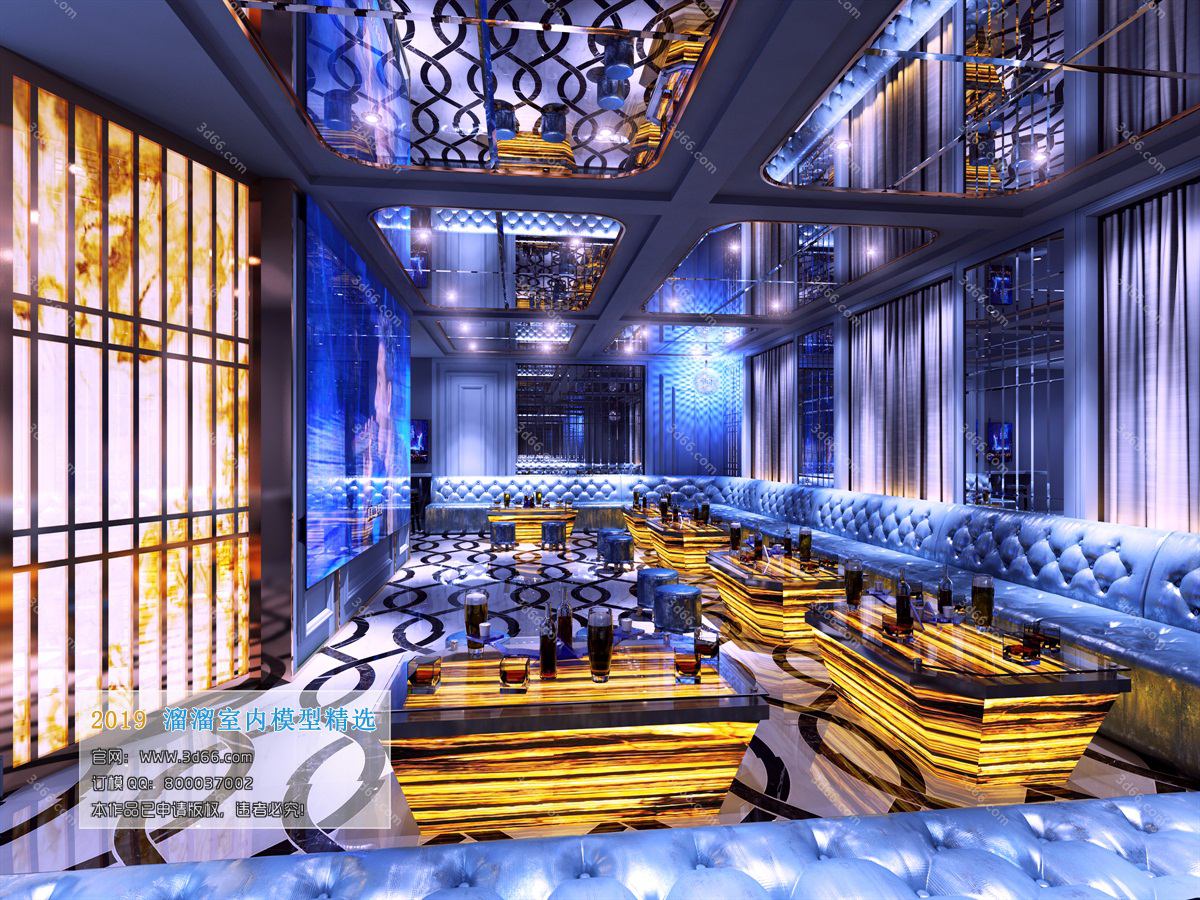 This 3D scene showcases a KTV Bar Sauna designed in a Postmodern style. The interior features unique design elements that blend modern and postmodern aesthetics. Explore the intricate details of the bar and sauna setting, perfect for those looking for a luxurious and stylish space.