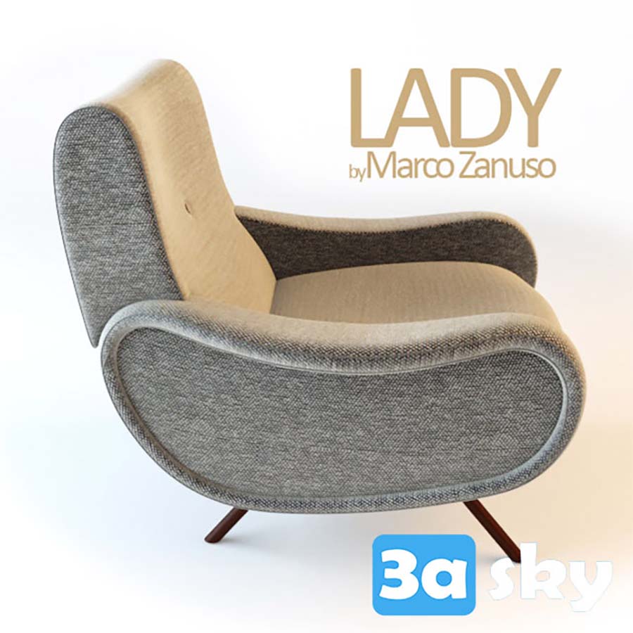 This 3D model features the Lady Armchair designed by Marco, showcasing elegant and modern furniture design. The armchair is perfect for interior design projects, adding a touch of sophistication to any space.