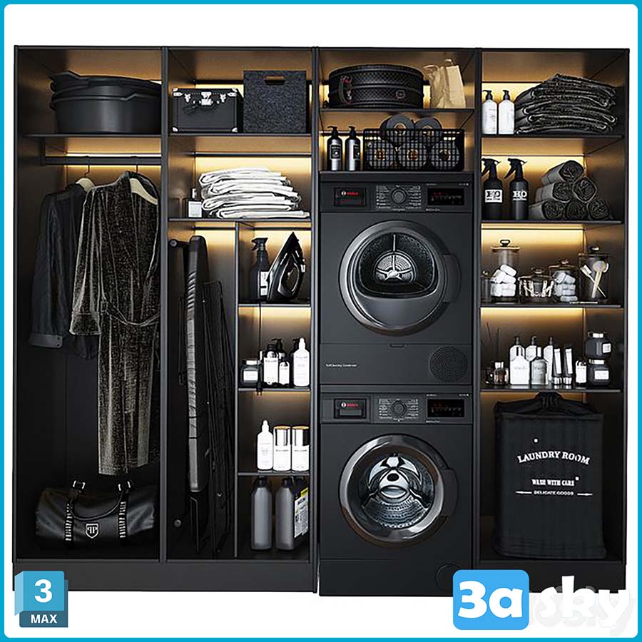 This 3D model showcases a beautifully designed laundry room created using 3DS MAX software. The room features modern furniture and interior elements, providing inspiration for home decor and interior design projects. Explore the intricate details and layout of this virtual space to gather ideas for your own design endeavors.