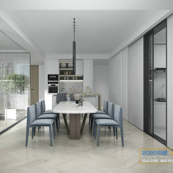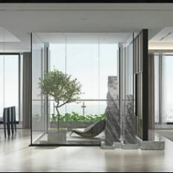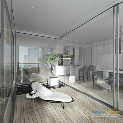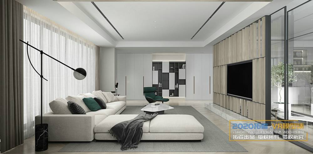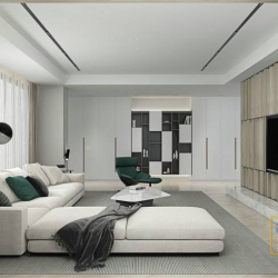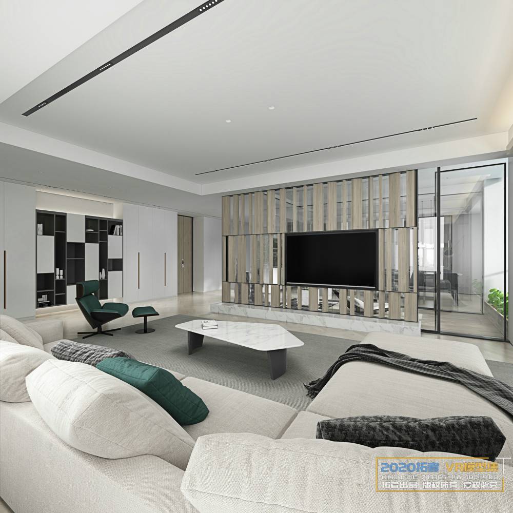 This 3D scene features a modern living room setup with stylish furniture and decor elements. The design is visually appealing and can serve as inspiration for interior design projects. The scene is created in 3DS MAX and provides a realistic representation of a contemporary living space.