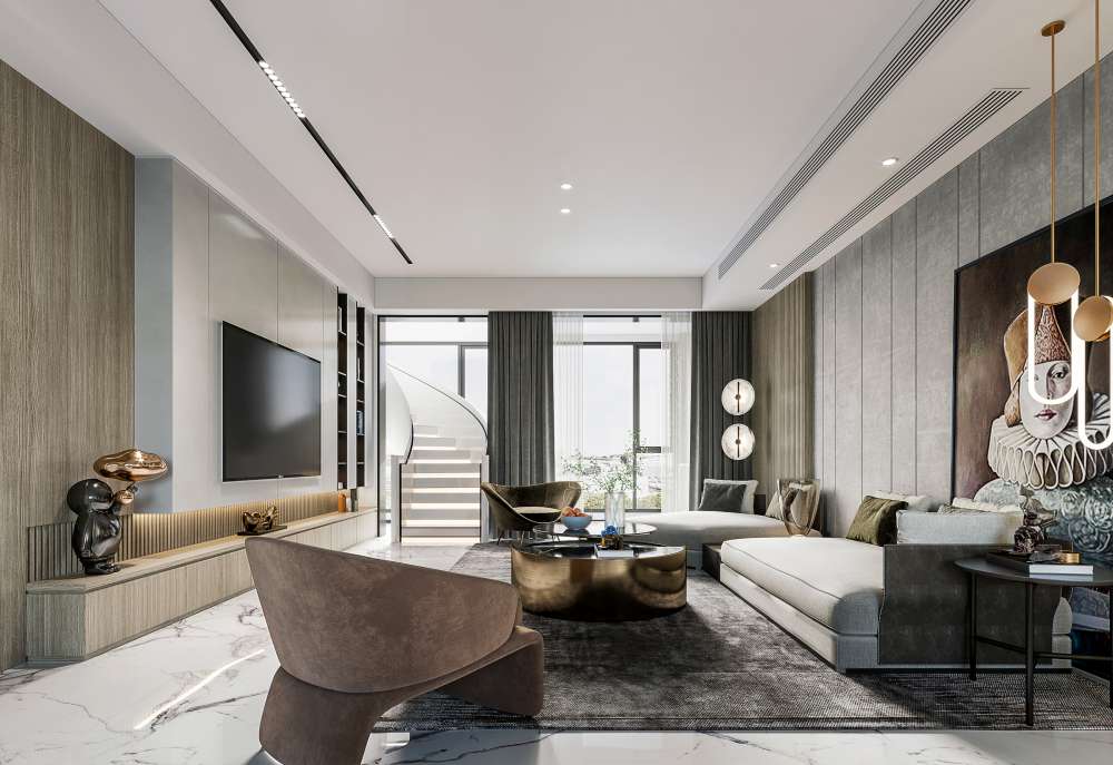 This 3D scene showcases a modern living room interior design with carefully selected furniture and decor items. The scene is created in 3DS MAX and offers a glimpse into a stylish and cozy living space. Explore the details and get inspired for your own interior design projects.