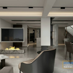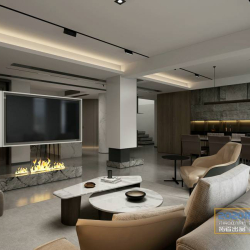 This 3D scene showcases a modern living room with stylish furniture and decor. The design features a contemporary aesthetic with a focus on comfort and functionality. Explore the details of the room layout, furniture placement, and decor elements to gather inspiration for your own interior design projects.