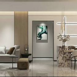 This 3D scene showcases a modern living room interior design with carefully selected furniture and decor. The layout is stylish and inviting, perfect for inspiration and visualization purposes. Explore the details and design elements in this captivating 3D rendering.