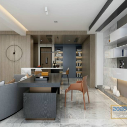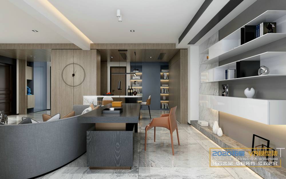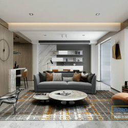 This 3D scene features a modern living room setup with stylish furniture and decor. The design showcases a blend of contemporary and minimalist elements, creating a cozy and inviting space. Perfect for interior design enthusiasts and those looking for inspiration for their own living spaces.