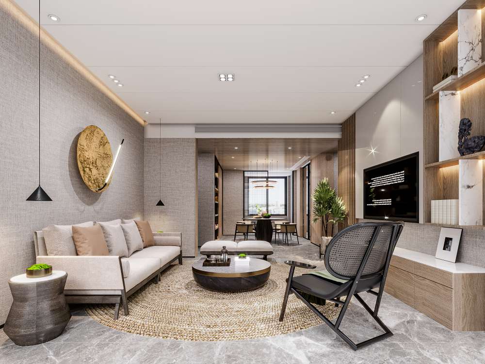 This 3D scene showcases a modern living room interior design created using 3DS MAX software. The scene features contemporary furniture, stylish decor, and a well-thought-out layout. Explore the details and get inspired for your own interior design projects.