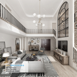 This 3D scene showcases a living room designed in American style. The room features elegant furniture, stylish decor, and a cozy ambiance. Explore the interior design details and get inspired for your own home decor projects.