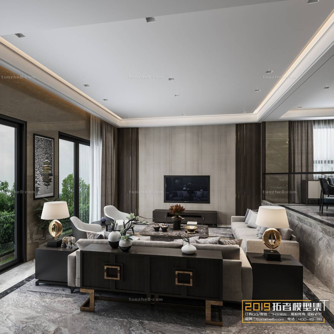 V_Living room Chinese style 85.rar