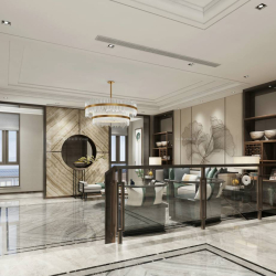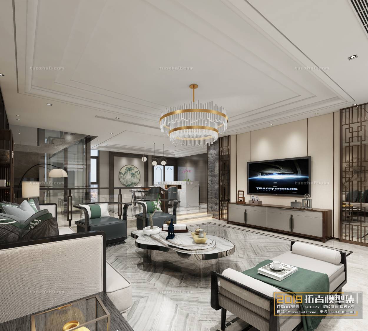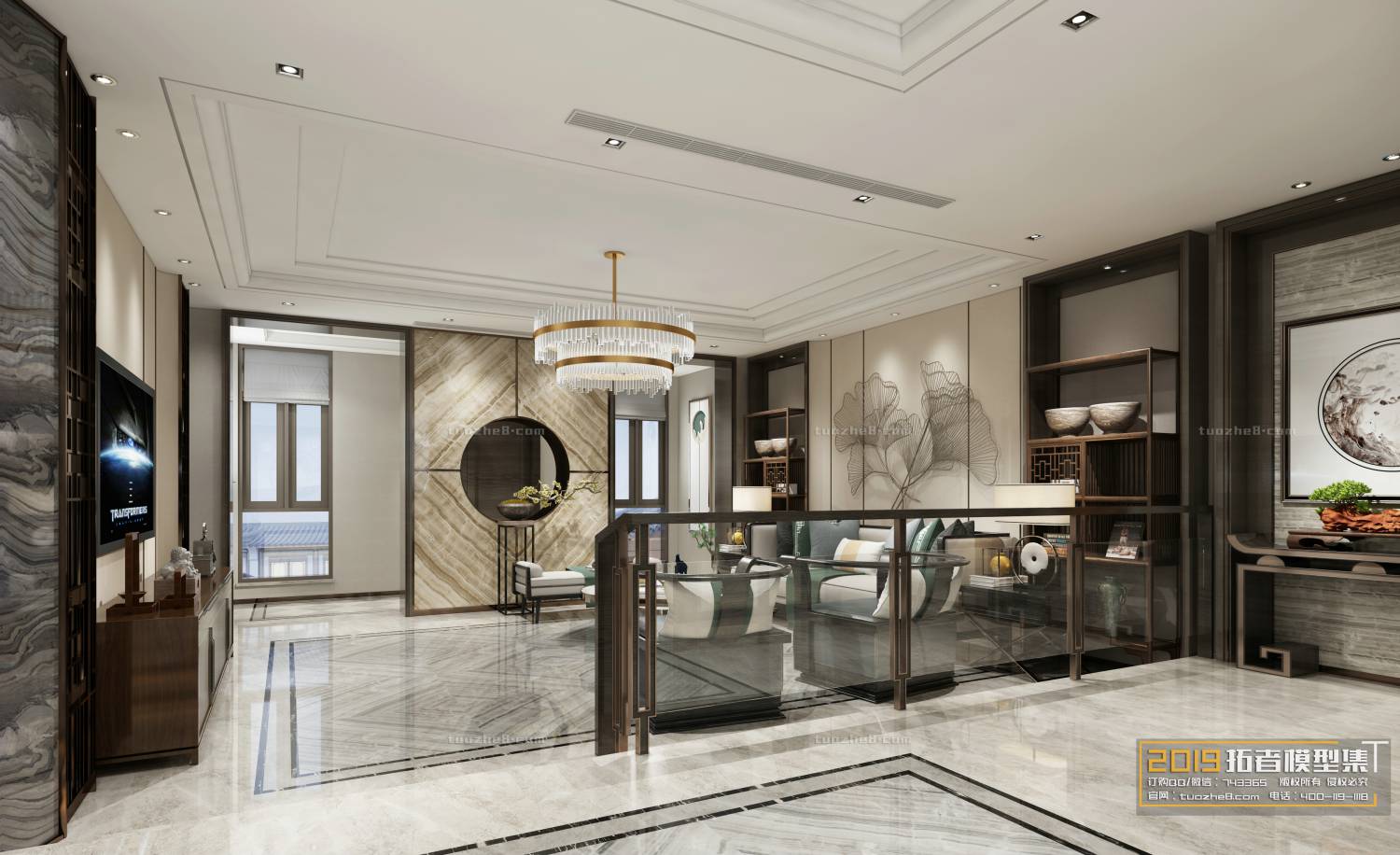 This 3D scene showcases a living room designed in a Chinese style, featuring traditional furniture and decor elements. The room exudes a sense of Asian culture and charm, with intricate details that bring warmth and elegance to the space. Explore this scene to get inspired for your own interior design projects.