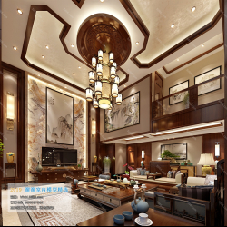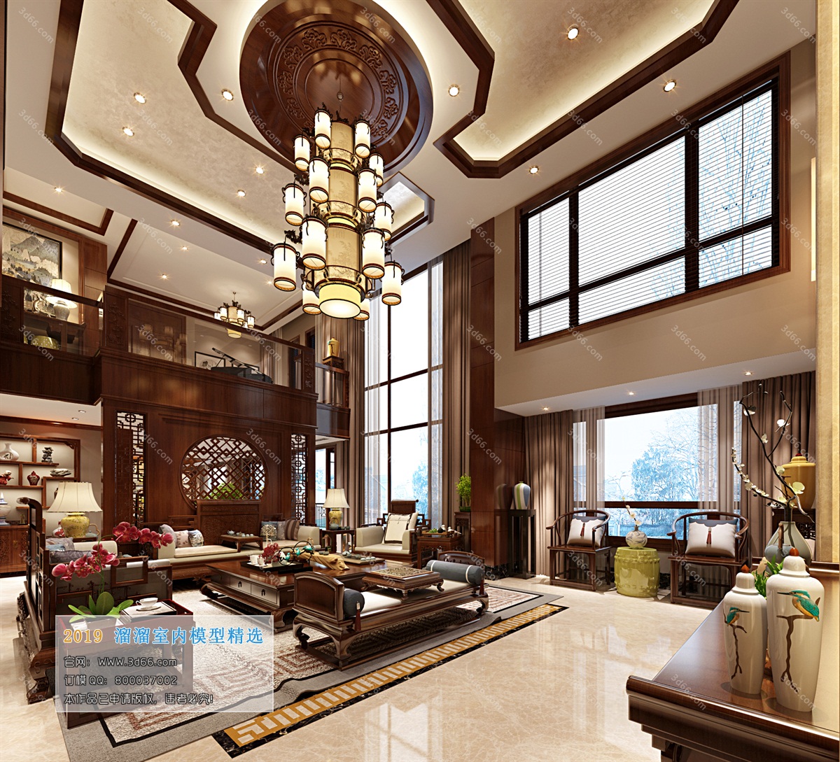This 3D scene showcases a living room designed in a traditional Chinese style. The room features intricate wooden furniture, decorative elements, and a warm color palette typical of Chinese interior design. Explore the fusion of traditional and modern elements in this beautifully crafted space.