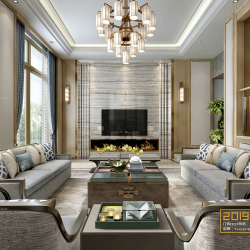 This 3D scene showcases a living room designed in a Chinese style, featuring traditional furniture and decor elements. The room is elegantly decorated with intricate details that reflect the essence of Chinese design aesthetics. Explore this scene to get inspiration for your own interior design projects.