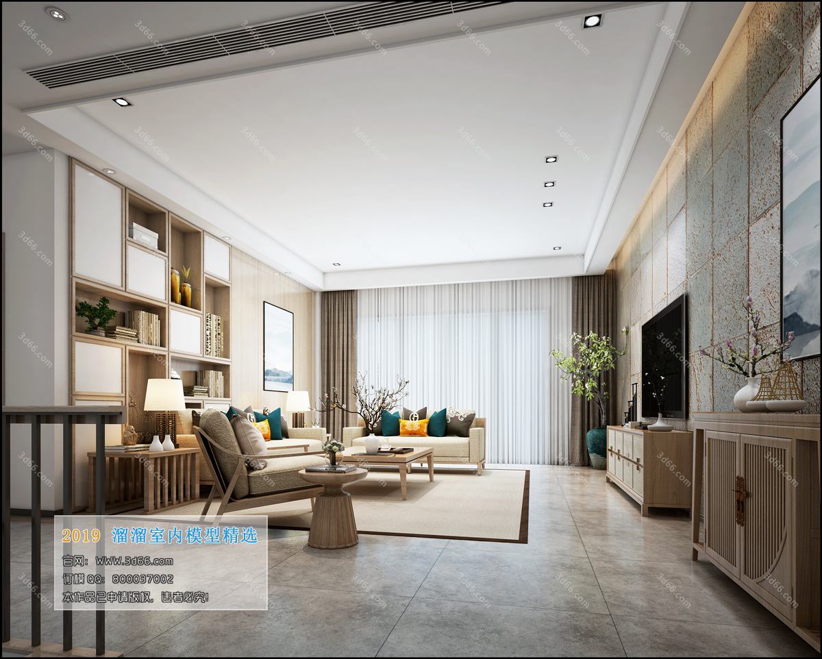This 3D scene showcases a living room designed in a traditional Chinese style. The room features elegant furniture, intricate decor, and cultural elements that create a harmonious and inviting space. Explore the blend of modern design with traditional Chinese aesthetics in this visually stunning representation.