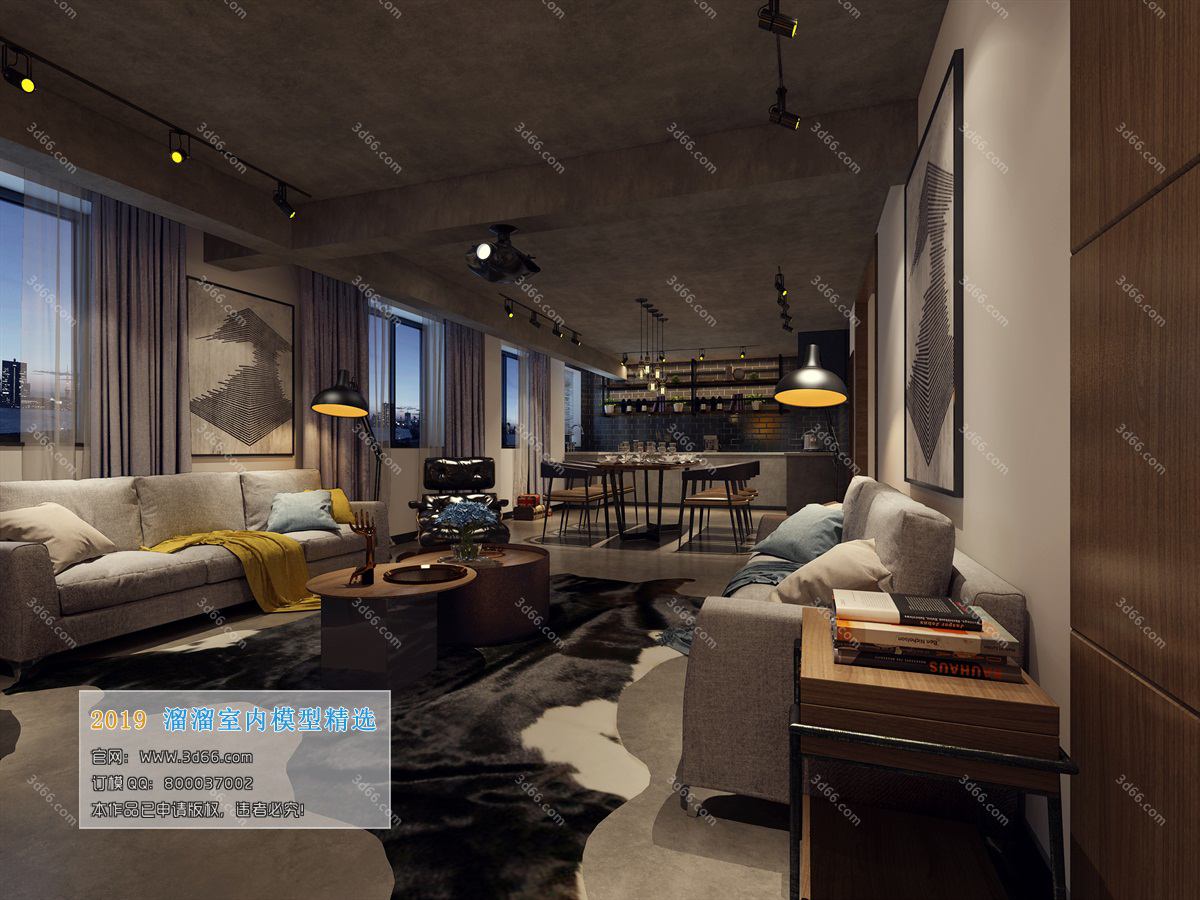 This 3D scene showcases a living room designed in an industrial style. The room features a blend of modern and industrial elements, with exposed brick walls, metal accents, and contemporary furniture. The design creates a unique and stylish living space suitable for various architectural visualization projects. Download the 3DS MAX file to explore the details and use it in your own design projects.