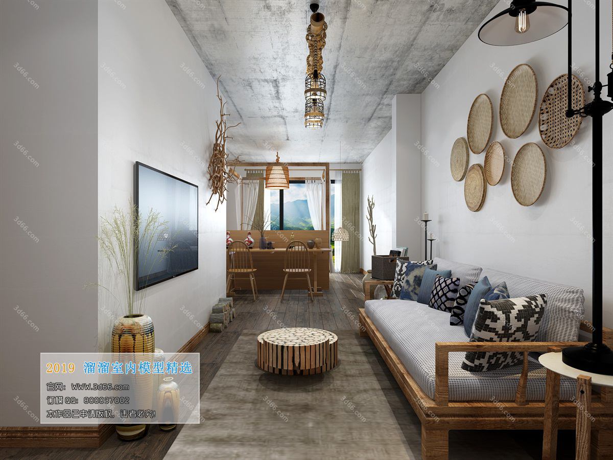 This 3D scene features a living room designed in a mix of styles, blending modern and traditional elements. The room is elegantly furnished with a variety of furniture pieces, creating a harmonious and stylish space. The color palette is warm and inviting, with a focus on comfort and aesthetics. Perfect for showcasing interior design concepts and home decor ideas.