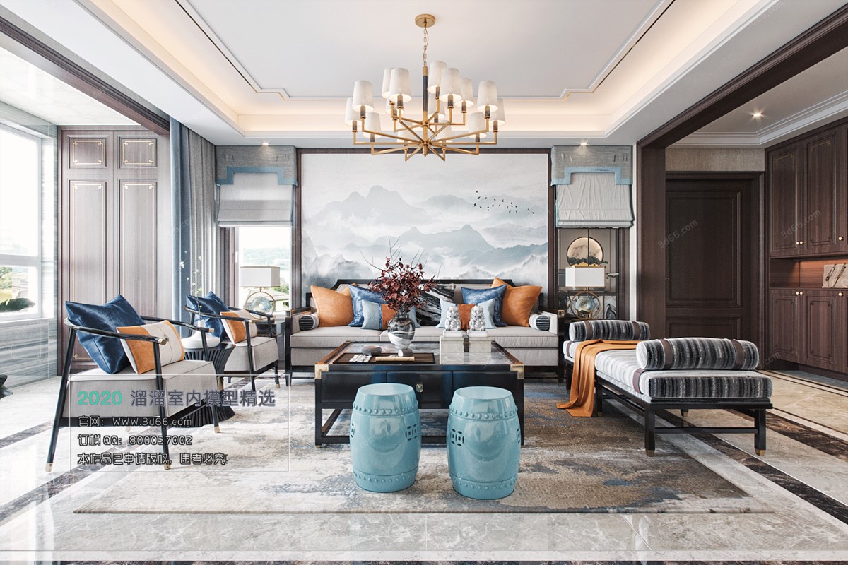 Living Room Modern Chinese Style Vray Model 024