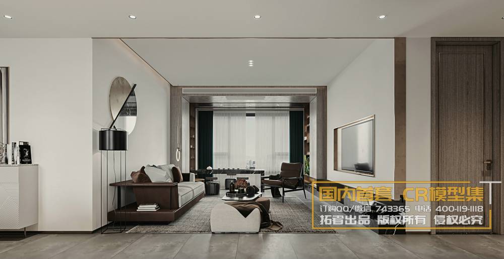 This 3D scene showcases a modern living room design with a focus on contemporary style and functionality. The scene includes carefully selected furniture pieces and interior elements that create a harmonious and inviting space. Explore the details of this design to gather inspiration for your own interior projects.