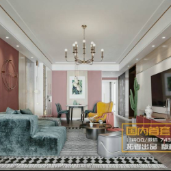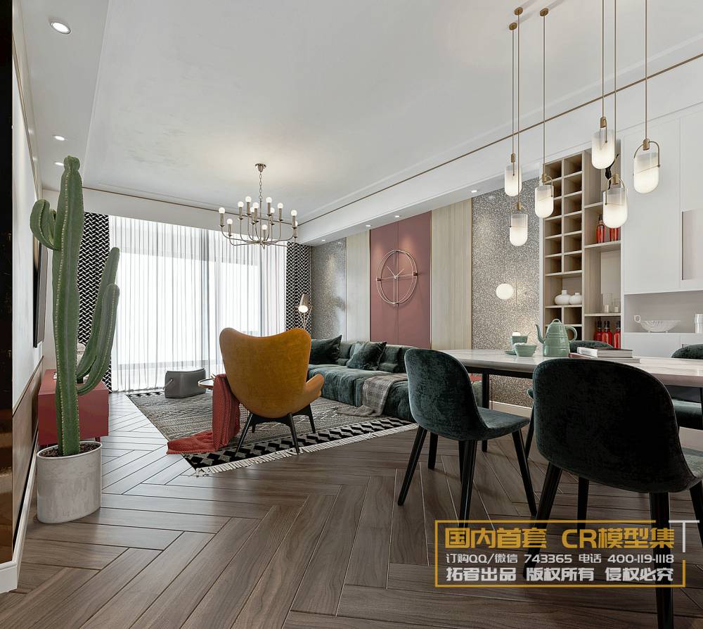 This 3D scene showcases a modern living room designed in a contemporary style. The room features sleek furniture, elegant decor, and a harmonious color palette. Explore this interior design concept for inspiration and ideas for your own living space.