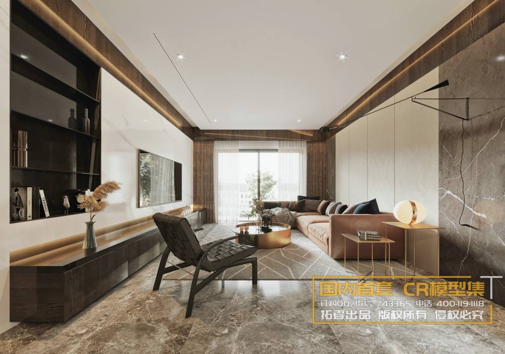 This 3D scene showcases a modern living room designed in a contemporary style. The interior features a perfect blend of elegance and functionality, creating a welcoming and stylish space. Explore the details of the furniture, decor, and layout in this beautifully crafted design.