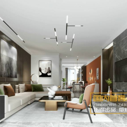 This 3D scene showcases a modern living room design with contemporary furniture and decor. The space is elegantly styled with a focus on clean lines and a neutral color palette. Experience the essence of modern interior design with Living Room Modern Style 41.
