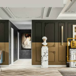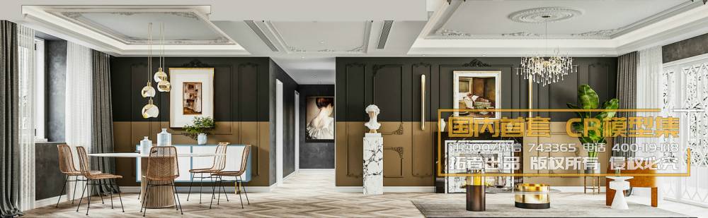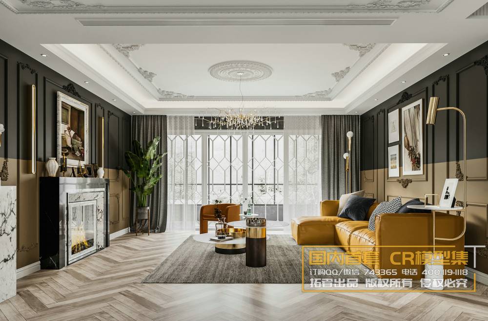This 3D scene showcases a modern living room designed in a stylish and contemporary manner. The interior features modern furniture and decor elements that create a sophisticated and inviting space. Explore the layout and design details of this living room setting.