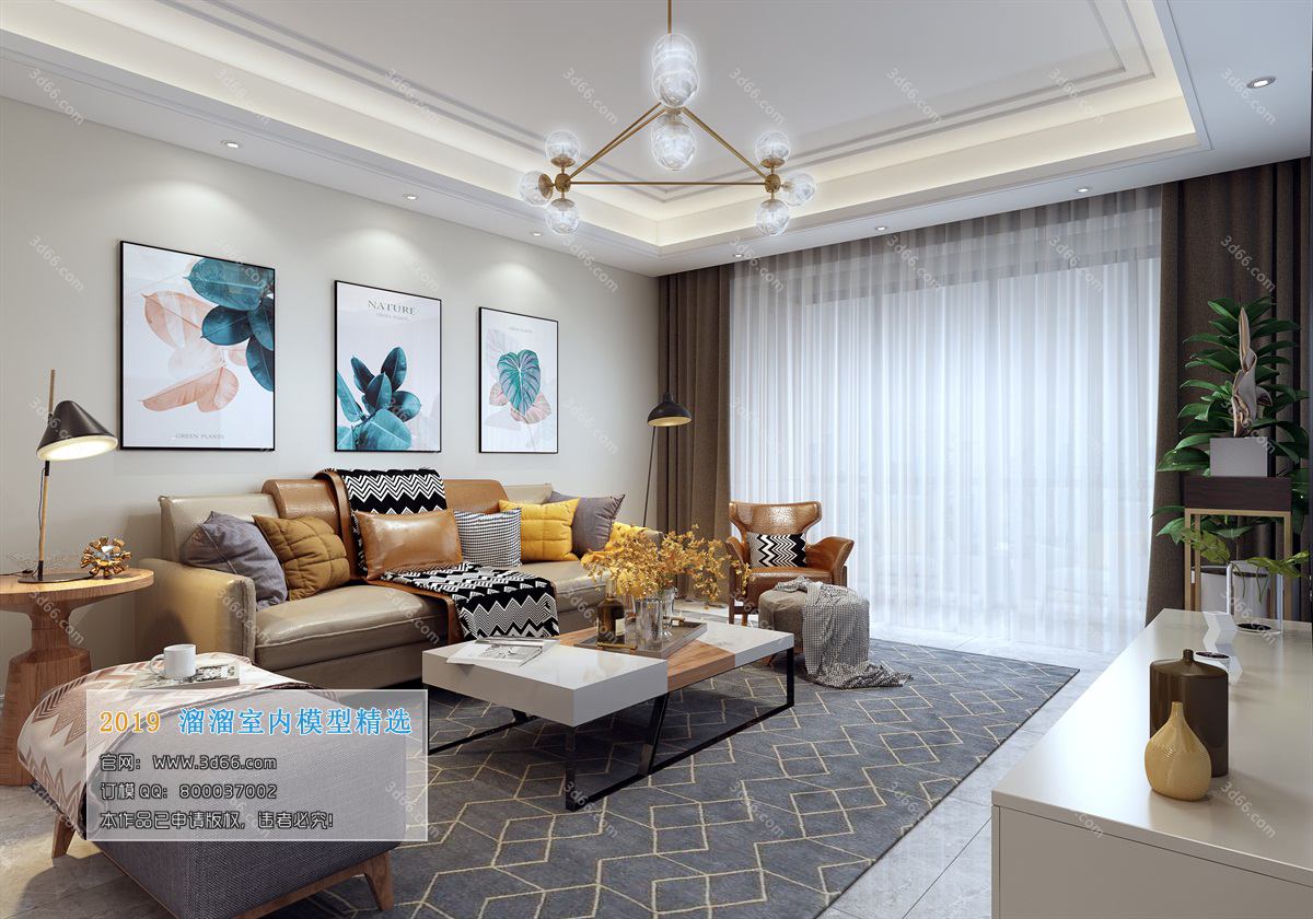This 3D scene showcases a living room designed in Nordic style, featuring modern furniture and a touch of Scandinavian aesthetics. Explore the blend of functionality and minimalism in this interior design setting.