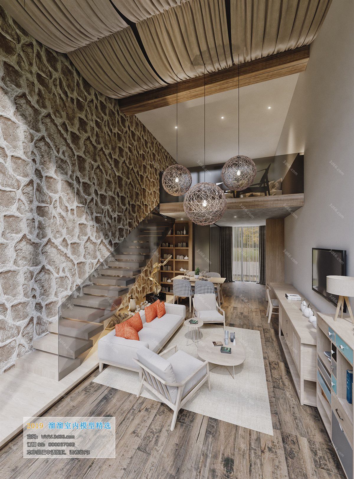 This 3D scene showcases a living room designed in Nordic style, featuring modern furniture and a touch of Scandinavian aesthetics. The interior design is minimalistic yet cozy, perfect for those who appreciate a blend of modern and traditional elements in their living space.