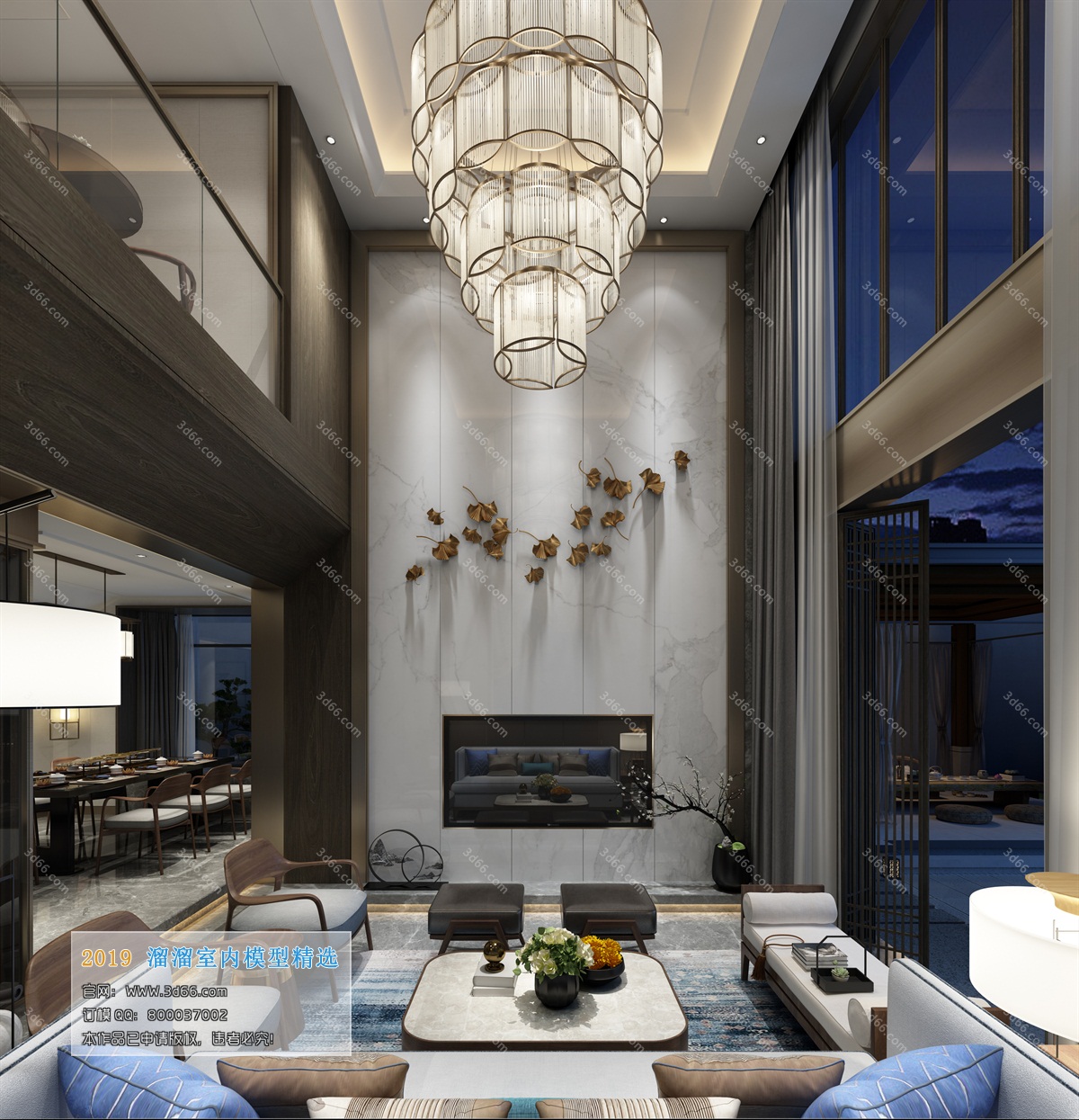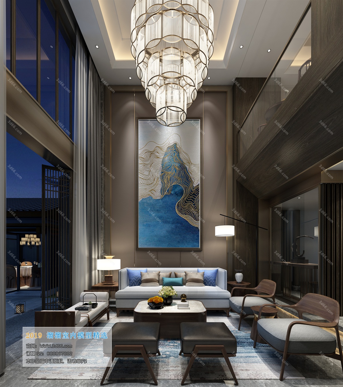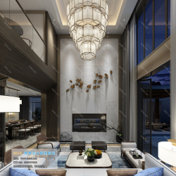 This 3D scene showcases a living room space designed in Chinese style, featuring traditional elements blended with modern aesthetics. The room is elegantly decorated with furniture and decor items that create a cozy and inviting atmosphere. Perfect for those looking for inspiration in interior design or 3D modeling projects.