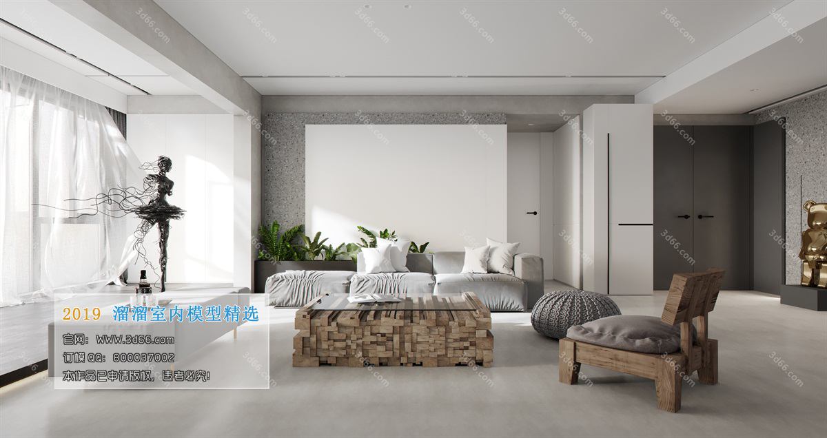 This 3D scene showcases a modern living room space with contemporary design elements. The room features stylish furniture, a neutral color palette, and a cozy ambiance. Perfect for interior design enthusiasts and those looking for inspiration for their own living spaces.