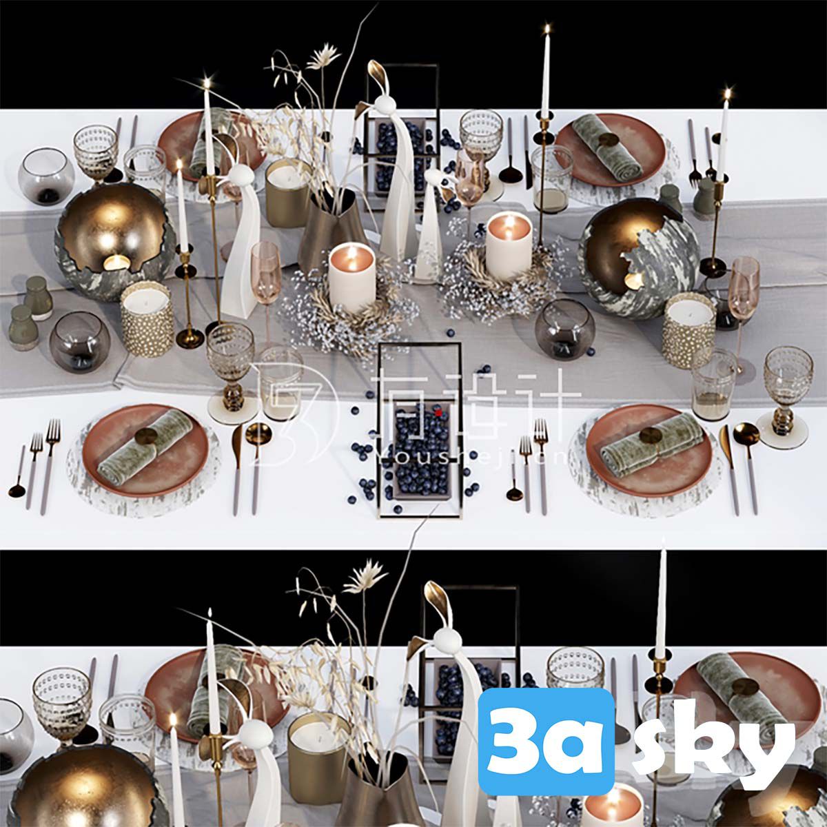 This 3D model features a luxurious table setting wreath, ideal for adding elegance to interior design projects. The intricate details and design make it a perfect choice for creating a sophisticated ambiance. Enhance your visualizations with this high-quality decoration model.