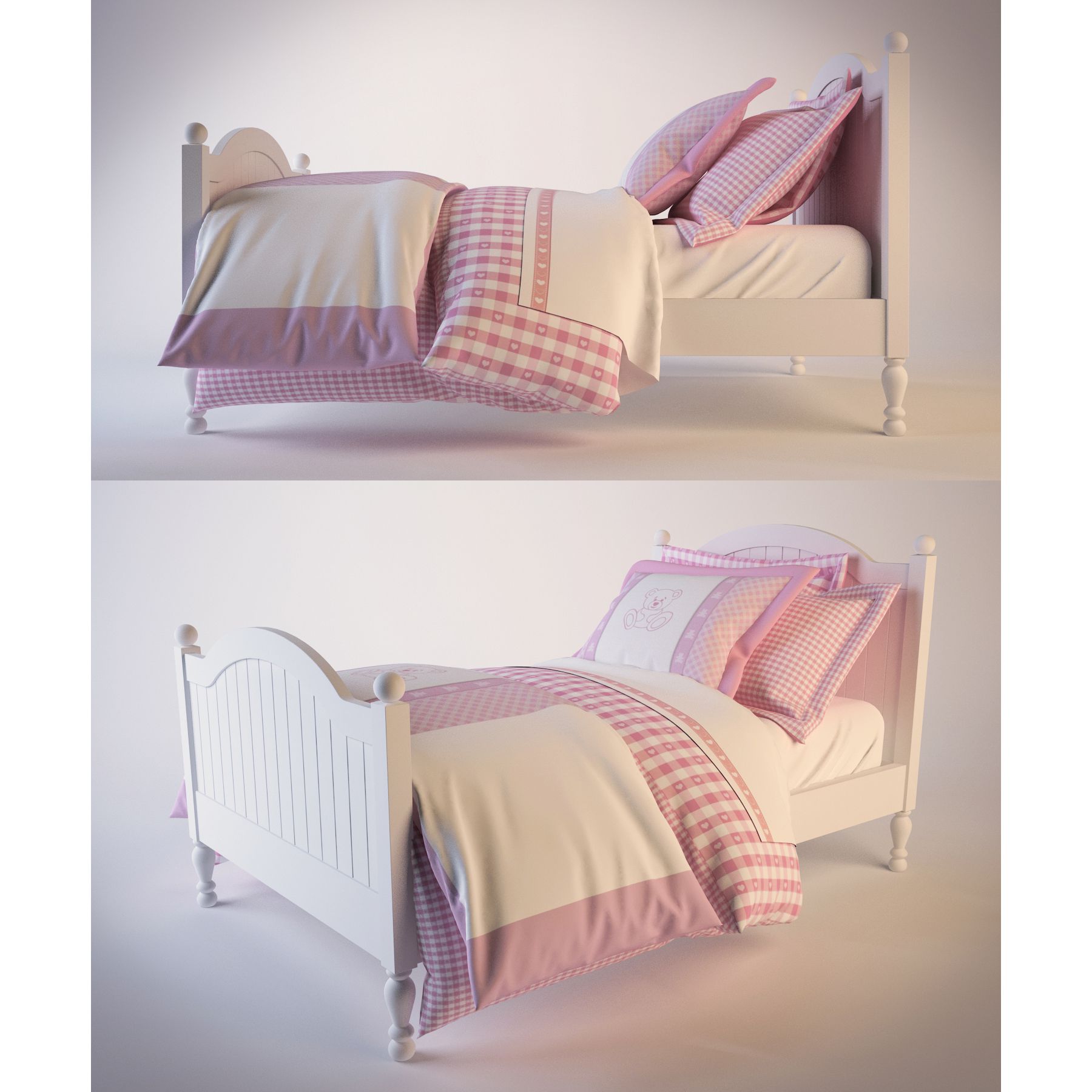 This 3D model features a magenta bed designed for kids, suitable for interior design and architectural visualization projects. The model is created with attention to detail and can be used in various 3D rendering software. Enhance your design projects with this high-quality 3D asset.