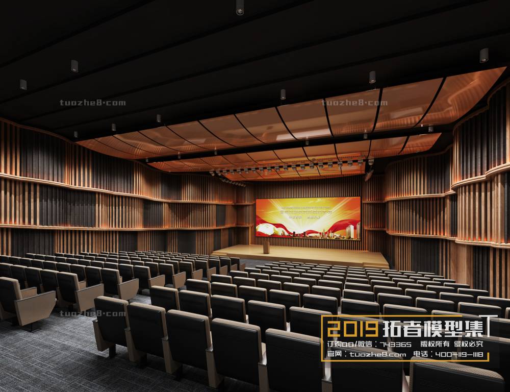 This 3D scene features a modern meeting room lecture hall setup, ideal for presentations, meetings, and lectures. The design includes contemporary furniture, audiovisual equipment, and a spacious layout conducive to collaborative work and learning environments.