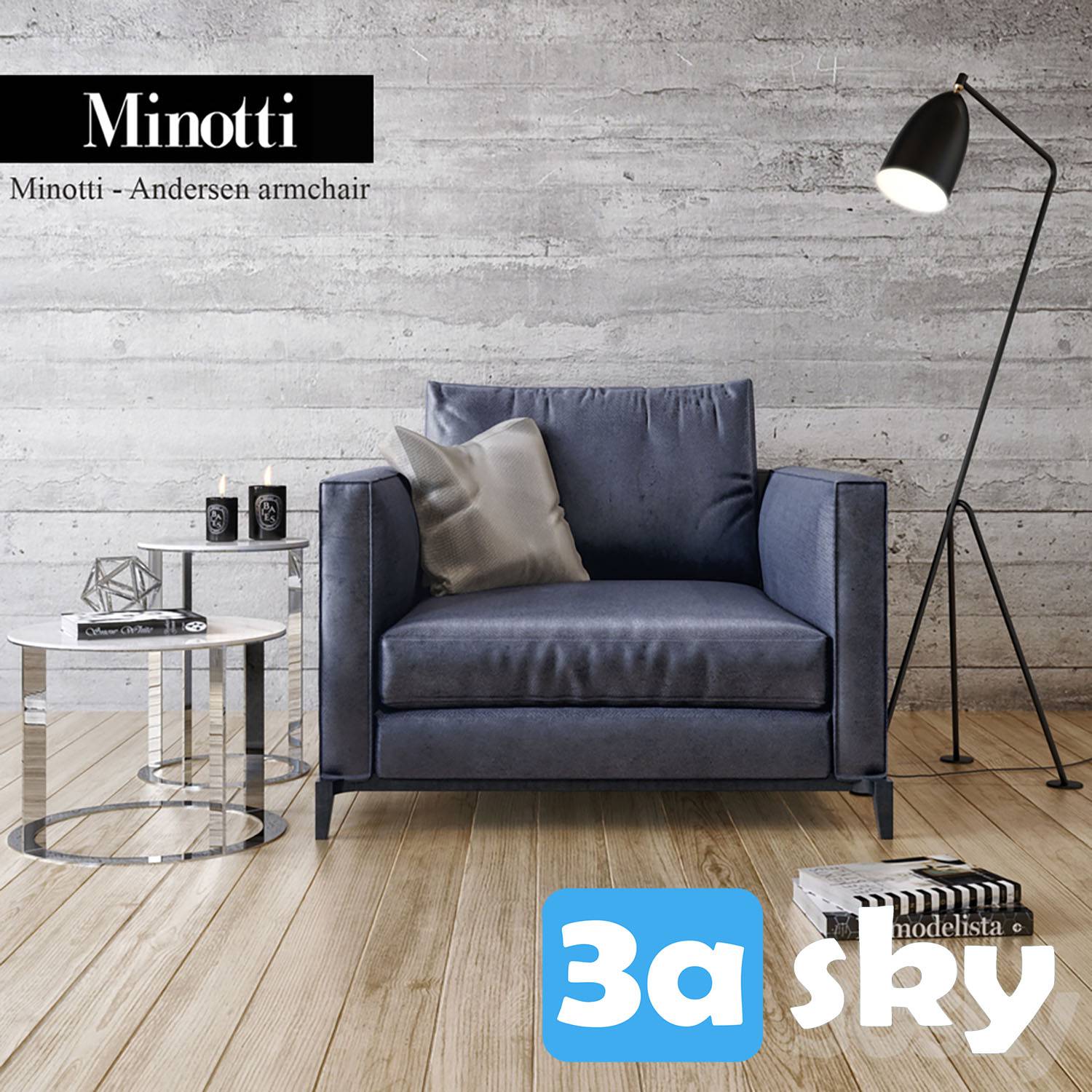 This 3D model features the Minotti Andersen Armchair, a luxurious and stylish furniture piece perfect for interior design projects. The file is compatible with 3DS MAX software and offers a high level of detail for realistic renderings. Enhance your architectural visualizations with this premium furniture design.