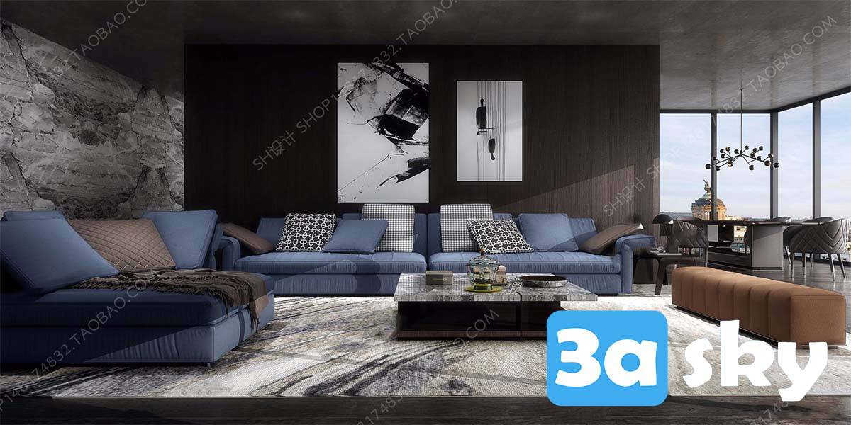 This 3DS MAX/BRANDS image showcases a detailed and realistic 3D model of Minotti Furniture. The image provides a clear view of the design and craftsmanship of the furniture piece, highlighting its quality and intricate details. Perfect for those looking to explore high-quality furniture designs in 3D.
